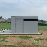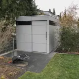 This garden shed by the pool is located near Turin and serves as classic storage space for everything related to water: air mattresses, cushions, pool toys and accessories. The sliding door provides quick access without requiring a lot of space for door leaves. This leaves the area in front of the shed usable – for storage, sorting or simply as a transition zone between the pool and the garden.