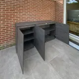 Además de la mejora estética, esta solución se centró en la facilidad de uso. Dado que la entrega fue realizada personalmente por la dirección, se pudo garantizar una integración óptima en el conjunto existente. Para la clienta, el armario de jardín resistente a la intemperie supone sobre todo una notable facilidad: los utensilios y accesorios de jardín están accesibles a una altura cómoda y sin esfuerzo. Gracias a su naturaleza totalmente libre de mantenimiento, se eliminan por completo las laboriosas tareas de mantenimiento, como el repintado. Basta con limpiarlo con un paño para mantener el aspecto del mueble de forma duradera, lo que deja más tiempo para relajarse en la terraza.