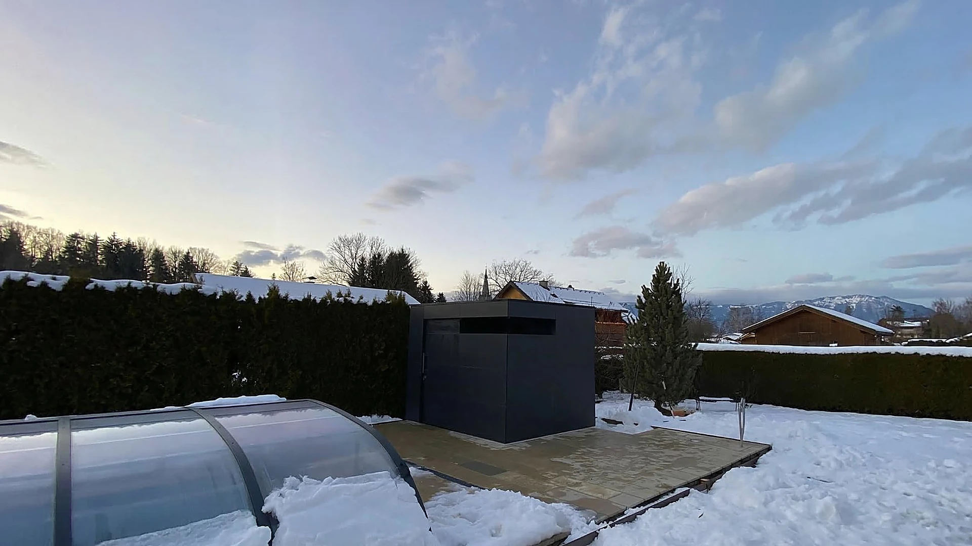 Besonders beim Dach trennt sich die Spreu vom Weizen. Unsere Dachträger sind so dimensioniert, dass sie selbst hohen Belastungen standhalten. Schneelast-Benchmark: Wir kalkulieren oft mit Lasten von bis zu 1,5 kN/m² (was ca. 150 kg pro qm entspricht). Regionale Sicherheit: Damit liegt unser Gartenhaus weit über den Anforderungen der Schneelastzone München und bietet sogar genügend Reserven für schneereichere Regionen in Österreich oder der Schweiz. Während andere bei starkem Schneefall nervös zum Schneeschieber greifen, können Sie sich entspannt zurücklehnen – die Statik Ihres Gartenhauses trägt diese Last mit Leichtigkeit.