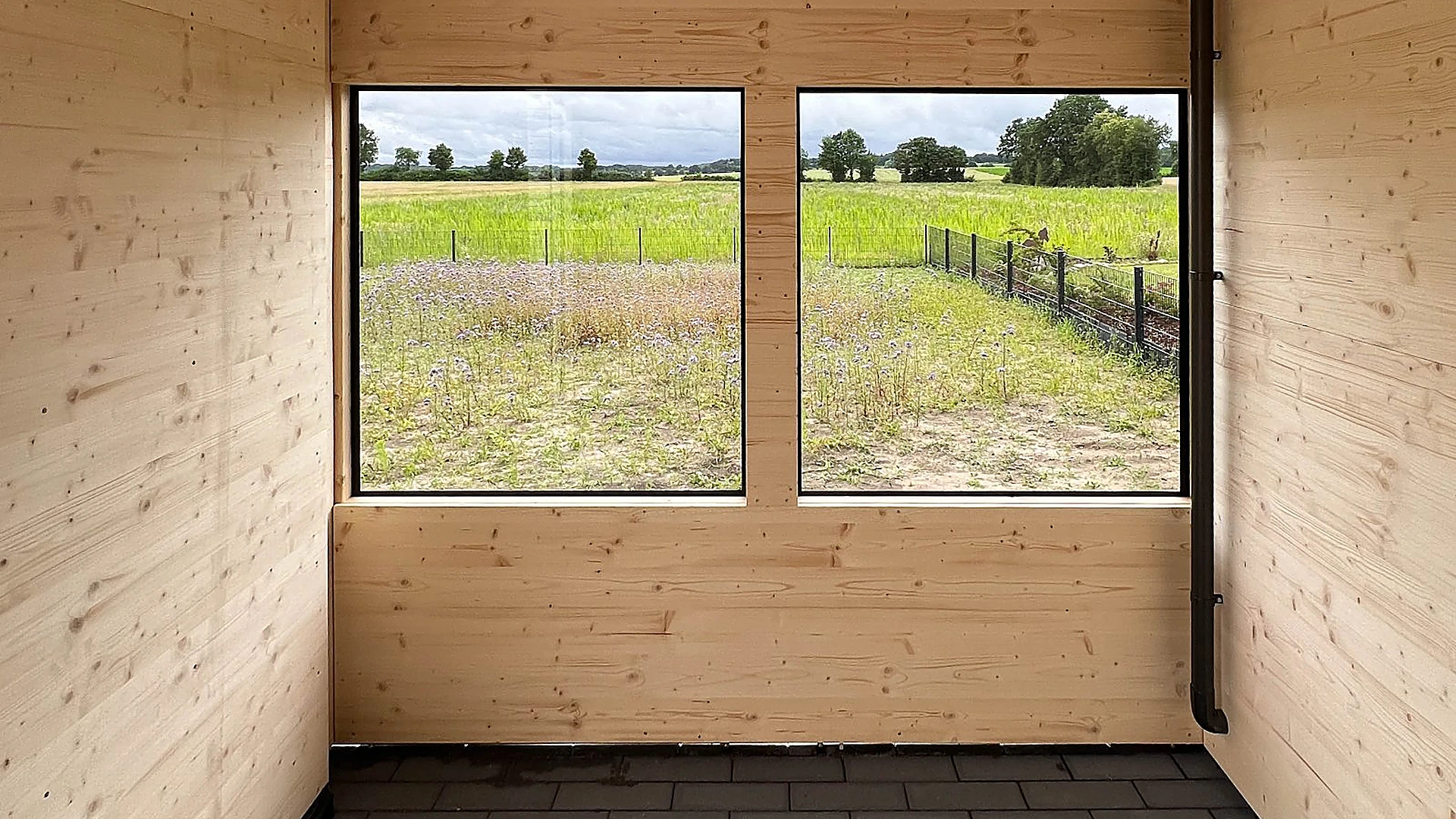 Das modulare System unserer Konstruktion erlaubt es, auf Wunsch ganze Wandfelder als Glasflächen auszuführen. Diese großzügigen Glas-Felder bieten gestalterischen Mehrwert und funktionale Vorteile: Durch die transparente Fassade wird der Innenraum bei Sonneneinstrahlung natürlich erwärmt. Dieser solare Wärmegewinn schafft in den Übergangszeiten und im Winter ideale Bedingungen für das Überwintern von Kübelpflanzen. Das Gartenhaus wird so zu einem lichtdurchfluteten Schutzraum, der frostfreie Lagerung ermöglicht und gleichzeitig eine offene Sichtachse in den Garten erhält.