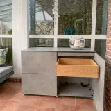 Questo sideboard è progettato come armadio da terrazza chiudibile a chiave in antracite e offre spazio di stivaggio dove serve. Accessori, cuscini o piccoli elettrodomestici sono a portata di mano direttamente all'aperto, ma non sono accessibili a tutti. L'antracite si abbina bene alle terrazze moderne e ha un effetto pulito, senza che l'armadio risulti invadente.