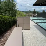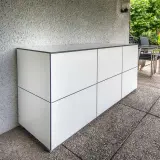 In questo progetto nella regione di Monaco di Baviera, l'attenzione era rivolta alla fusione perfetta tra funzionalità e architettura moderna. L'elegante sideboard da esterno è stato collocato come elemento indipendente su un'ampia terrazza. Grazie alla struttura slanciata e alla scelta del colore nella delicata tonalità terra "Toscana", l'oggetto si integra armoniosamente nell'ambiente circostante senza disturbare la vista sul paesaggio e crea un collegamento fluido tra lo spazio abitativo e l'area esterna.