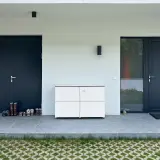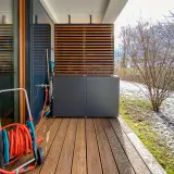 A Dresda, questa referenza dimostra in modo impressionante come un armadio da giardino per esterni possa essere molto più di un semplice elemento funzionale. La credenza di design si integra perfettamente nel design esistente, composto da una moderna protezione dalla vista, una piccola fontana ornamentale e le piante adiacenti. Il posizionamento preciso sulla striscia di ghiaia lungo il rivestimento della terrazza crea un'immagine complessiva tranquilla e ben proporzionata. Il linguaggio formale semplice del mobile sostiene l'atmosfera meditativa del giardino e fa risaltare al meglio i materiali di alta qualità della terrazza, senza essere disturbato da utensili sparsi in giro.