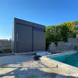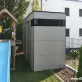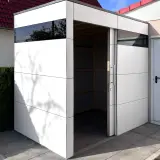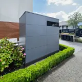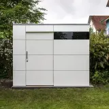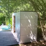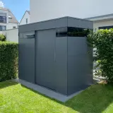 Dietro la facciata minimalista si nasconde un vero e proprio miracolo di spazio, che racchiude in modo sicuro tutti i componenti importanti come locale tecnico per la piscina. Con una larghezza di 300 cm, offre spazio sufficiente per la tecnologia della piscina, i lettini, i cuscini e altri accessori. In questo modo la terrazza rimane sempre in ordine e tutti gli utensili sono a portata di mano direttamente sul luogo di utilizzo. Il robusto rivestimento esterno in HPL protegge in modo affidabile le attrezzature di alta qualità dagli agenti atmosferici e garantisce una resistenza cromatica duratura.