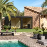 Die Gartensauna ist nicht nur ein optisches Highlight, sondern auch technisch durchdacht. Mit hochwertigen und natürlichen Materialien und einer wetterfesten Konstruktion ist sie für alle Jahreszeiten gerüstet. Die Kombination aus warmen Holzoberflächen im Inneren und der robusten HPL Hülle sorgt dafür, dass man zu jeder Jahreszeit entspannen kann. Und auch in der kühleren Jahreszeit bietet die Sauna mit Blick ins Grüne ein gemütliches, warmes Refugium, das den Garten zu einem ganzjährigen Wohlfühlort macht.