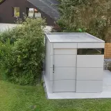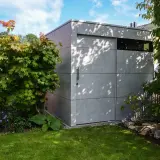 Ein freistehendes Gartenhaus wie dieses Modell ist nicht nur praktisch, sondern auch ein echtes Highlight in Ihrem Garten. Schlicht und modern in Silbergrau bringt es Ruhe und Eleganz in jeden Außenbereich. Ob als Blickfang im Vorgarten oder als stilvolle Ergänzung im Garten, unser Gartenhaus fügt sich harmonisch ein und wertet jede Outdooroase deutlich auf.