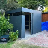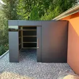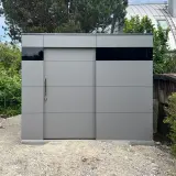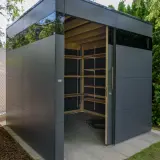 Unser Gerätehaus bietet ausreichend Platz für Gartengeräte, Outdoor-Möbel, Polster oder Pflanzentöpfe, die wettergeschützt und schnell griffbereit untergebracht werden sollen. Die robuste und wartungsfreie HPL-Fassade ist UV- und witterungsbeständig, die stabile Unterkonstruktion aus heimischer Fichte ermöglicht die einfache Montage von Regalen, Fahrradträgern oder Beleuchtung. Die barrierefreie Schiebetür mit Edelstahlgriff sorgt für komfortablen Zugang. Unser Gartenhaus bietet perfekten Schutz und eine sichere Aufbewahrung Ihrer Gartenausstattung.