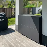 Vor dieser traumhaften Kulisse bietet unser Gartenschrank XL 130 mit den Maßen 60 cm x 130 cm x 85 cm (TxBxH) einen schicken und gleichzeitig funktionalen Stauraum – wetterfest, regensicher und UV-beständig!